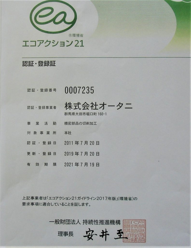 「エコアクション21ガイドライン2017年版」(環境省)の要求事項に適合していることを証します。